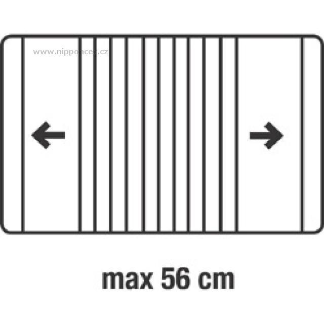 na šířku 35 - 56 cm, délka roštu 31,5 cm. Univerzální rošt do trouby Electrolux, roztažitelný 35-56 cmNevyžaduje žádné nástroje ani úchytky, dá se použít i v chladničce nebo např. na grilování v přírodě.