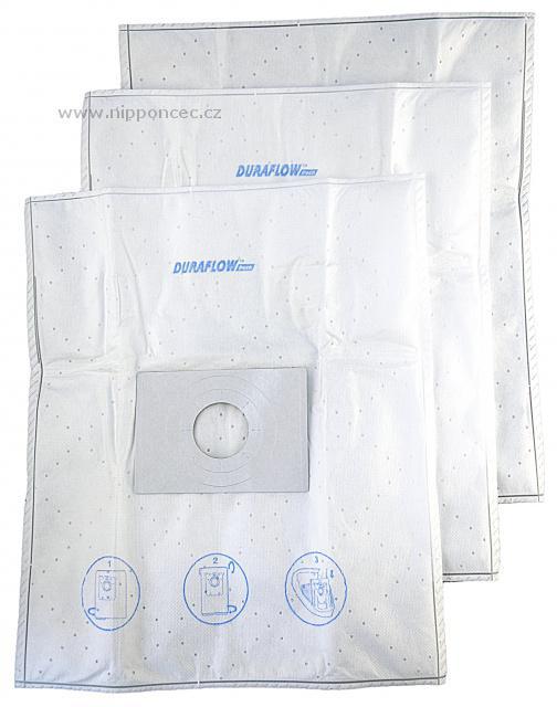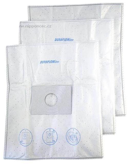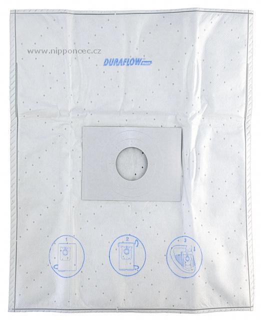 Sáčky do vysavače jsou vyrobeny z patentovaného materiálu DURAFLOW™ který ve srovnání s klasickými papírovými sáčky do vysavače déle vydrží, vysavač si uchová svou sací sílu až do plného zaplnění sáčku - nedochází k postupnému snižování výkonu vysavače. Vynikající filtrace vám pomůže zachovat zdravější prostředí v domácnosti. Syntetické sáčky do vysavače DURAFLOW™ mají více vrstev: vnitřní vrstva působí jako první filtr, brání ucpání pórů sáčku mikročásticemi a tím zajišťuje jeho trvanlivost. Prostřední vrstva je podstatná pro úroveň filtrace a zdravé životní prostředí a uchování dobrého sacího výkonu vašeho vysavače. Vnější vrstva chrání prachový sáček vysavače proti roztržení - tím chrání i dvě předchozí vrstvy. Jemný porézní materiál je pro vysavače ideální, jeho použití je hygienické.