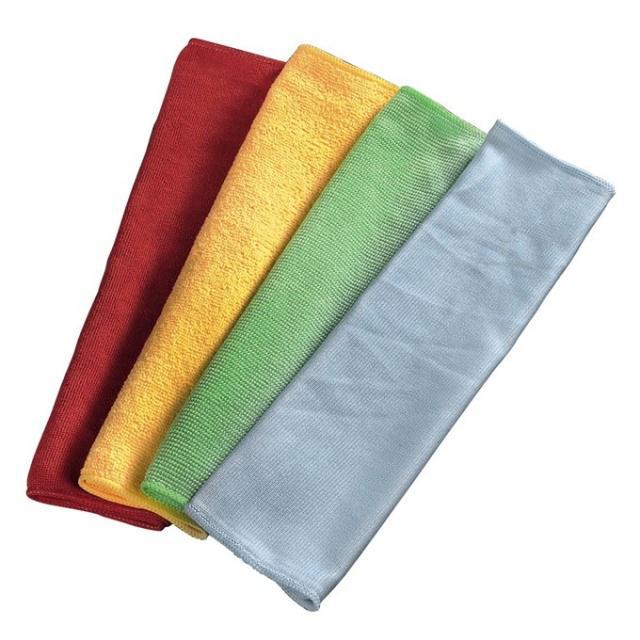 • každá utěrka má různou textůru určenou pro různé povrchy (červená na povrchy zařízení, modrá na sklo, žlutá univerzální použití, zelená na kuchyni)