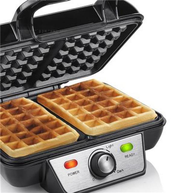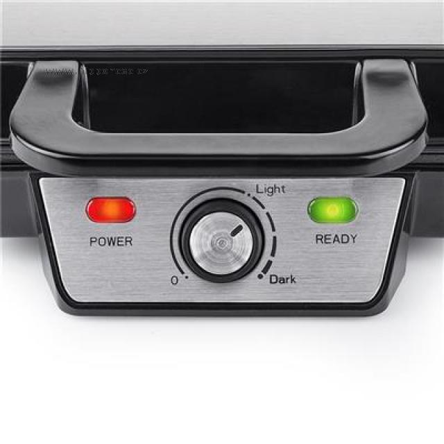 S tímto vaflovačem připravíte vafle během chviličky. Ploténky na vafle mají kvalitní nepřipékavý povrch a jejich údržba je tedy velmi jednoduchá. Vaflovač je vybaven nastavitelným termostatem (který zajišťuje správné propečení vaflí), světelnými indikátory provozu a úložným prostorem na kabel. Kryt je tvořen z černé nerezové oceli. Vaflovač můžete skladovat jak horizontálně, tak vertikálně.