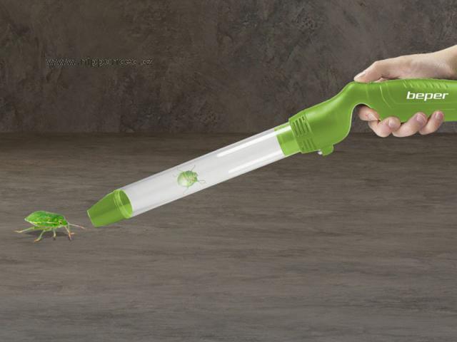 Bateriový vakuový lapač hmyzu Beper bezkontaktně a šetrně odstraní nežádoucí hmyz z vašeho domova. Přístroj hmyz pouze vysává, aniž by mu ublížil, a tak jej můžete bezpečně vypustit venku. Lapač je vhodný pro odchyt pavouků, švábů, kněžice zelené a dalšího nežádoucího hmyzu. Vysavač je naprosto bezpečný pro použití ve vašem obytném prostoru.