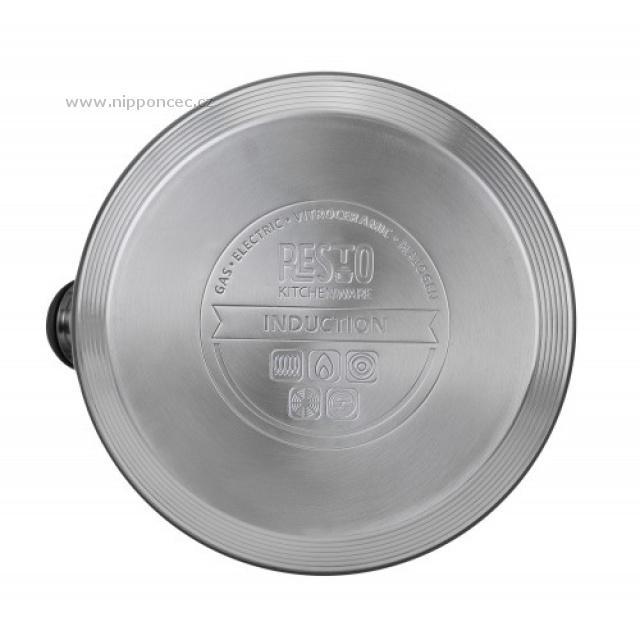 Konvice na vaření vody RESTO ARIES je určena pro všechny typy sporáků včetně indukčních. Tepelně akumulační dno zajišťuje rovnoměrné zahřívání a rychlý var. Ergonomická na dotyk chladná bakelitová rukojeť. Ventil se otevírá tlačítkem na rukojeti.