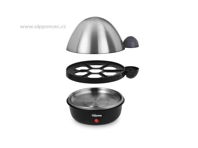 Vařič vajec na 1 až 7 vajíček najednou. V černé barvě, s nerezovým víkem s výpustí páry, je vybaven přepínačem ON -zapnuto/OFF vypnuto. Výkon vejcovaru je 350 W. Podložka na vodu je z nerezové oceli, součástí balení je kalíšek na vodu, sloužící jako doměrka s jehlou na propichování vajec. Podnos na 1-7 vajec je výjimatelný, což zajišťuje snadné čistění. Pokud vaříte vejce často, výrobek v kuchyni oceníte. Umístění v testu kvality.