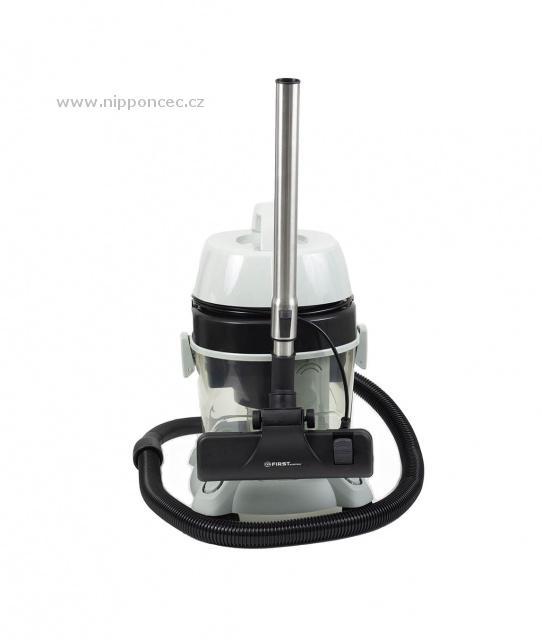 First Austria FA-5546-3 je víceúčelový bezsáčkový vysavač pro suché i mokré vysávání s kombinovanou hubicí vhodnou k luxování koberců i tvrdých podlah. Vysavač je vybaven vodním filtrem, který zajišťuje stálý sací výkon a kvalitnější vzduch bez alergenů. O dostatečný akční rádius pro pohodlný úklid se postará 5 metrů dlouhý přívodní kabel, teleskopická trubka a 1,5 metrů dlouhá hadice. Součástí vysavače je bohaté příslušenství - štěrbinová hubice, hubice na čalounění, lamelový kartáč a foukací nástavec. Nádoba na prach z transparentního plastu pojme až 6 litrů nečistot. Vysavač je vybaven užitečnou funkcí foukání např. pro odstranění listí z příjezdové cesty.