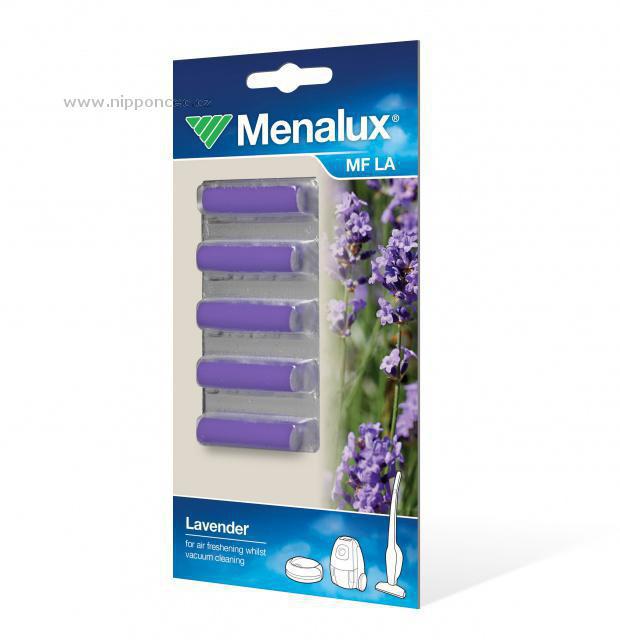 Menalux vůně do vysavače 5 tyčinek s vůní Levandule. Tyto parfémem nasycené vonné tyčinky neutralizují během vysávání nepříjemné pachy ze sáčku do vysavače, či z boxu na prach u vysavačů bezsáčkových, a během vysávání šíří ve vysávaném prostoru příjemnou vůni. Nové vůně Menalux jsou vhodné jak do vysavačů sáčkových, tak bezsáčkových, do vysavačů stojanových i robotických. Výrobce Electrolux pod svou značkou Menalux.
