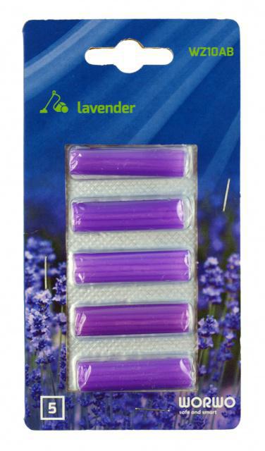 Worwo vůně do vysavače LAVENDER - levandulová. Tyto parfémované vonné tyčinky neutralizují během vysávání nepříjemný zápach ze sáčku do vysavače či z prachové nádoby u vysavačů bezsáčkových, rozšiřují příjemnou svěží vůni. Vložte tyčinku do prachového sáčku či boxu na prach a jednoduše vysávejte. Vyzkoušejte i jiné vůně a najděte svou nejoblíbenější!