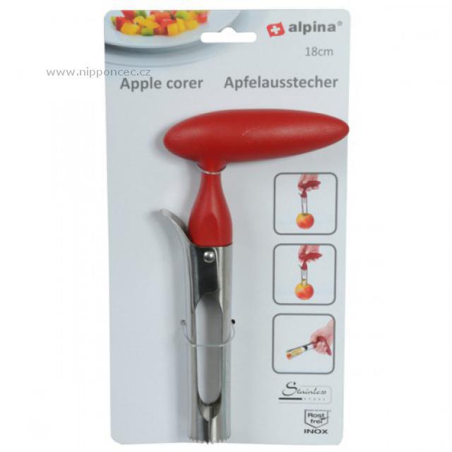 Vykrajovač jadřinců Alpina 00063 je vhodný na rychlé a snadné odstranění jádřinců ze středu plodu. Stačí jednoduše nasměrovat směrem skrz střed plodu a krouživým pohybem se velmi snadno zbavíte celého jaderníku najednou. Lze využít i na hrušky a další ovoce s obdobně uspořádanými jadérky i vnitřní stavbou. Vyrobeno z nerezu, rukojeť z ABS plastu.
