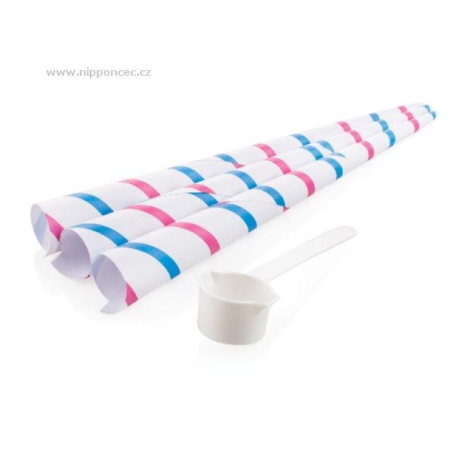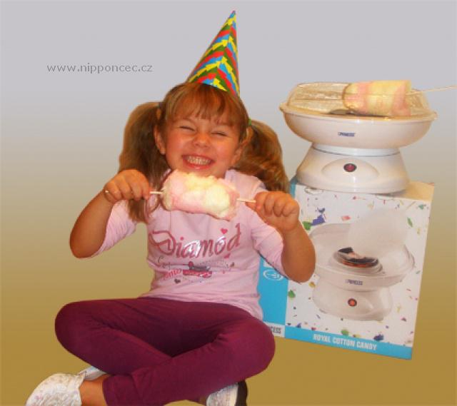 Výrobník cukrové vaty je přístroj. pro radost dětí i dospělých. Ze lžičky cukru vyrobí tuto nadýchanou pochoutku jen pouhým stisknutím tlačítka za pár minut. Pro barevnou cukrovou vatu stačí přidat trochu potravinářského barviva. Součástí je odměrka a 3 barevné papírové kornoutky na vatu.