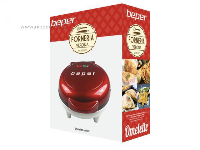 Všestranný výrobník omelet BEPER BT800 opeče 2 lahodné omelety najednou během několika minut. Ideální také pro přípravu sázených vajec, smažených vajec, tortilly, calzone, sladké a slané tortelli. Hliníkové desky s nepřilnavou úpravou na bázi teflonu usnadňují vyjímání omelet a snadno se čistí. Nechybí kontrolky provozu a teploty. Protiskluzové nožičky zajišťují stabilitu přístroje na pracovní desce.