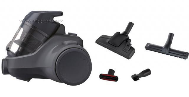 Součástáí balení je podlahová hubice DustTrap pro vysávání nečistot z podlah a parketová hubice pro vysátí nečistot ve spárech či drážek v parketách. Navíc s teleskopickými trubkami dosáhnete na vyvýšená místa. Nechybí nesené příslušenství, které obsahuje štěrbinovou hubici, se kterou se dostanete do každé škvíry a hubici na čalounění. Pro plynulý pohyb a lepší stabilitu disponuje velkými, měkkými kolečky. Délka přívodního kabelu činí 5 m, akční rádius 7 m.