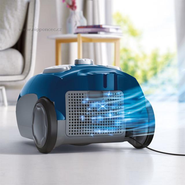 Sáčkový vysavač Easy Go o příkonu 650 W je osazen hubicí DustPro™ pro efektivní hloubkové čištění a omyvatelným hygienickým filtrem třídy 12. Mechanický Indikátor plného prachového sáčku vás včas upozorní na výměnu prachového sáčku a výkonu vysavače lze snadno regulovat. Měkčená kolečka zase nepoškrábou vaši podlahu a sníží hluk při manipulaci s vysavačem. Součástí jsou teleskopické trubky a integrované příslušenství (štěrbinová hubice, hubice na čalounění + kartáček). Délka přívodního kabelu činí 5m, akční rádius 7,5 m.