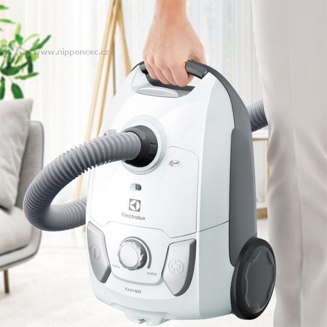 Sáčkový vysavač Easy Go o příkonu 650 W je osazen měkčenými kolečky, které při manipulaci s vysavačem tlumí hluk a chrání vaši podlahu, omyvatelným hygienickým filtrem třídy 12 a hubicí DustPro™ pro efektivní hloubkové čištění. Jakmile je prachový sáček naplněn, mechanický Indikátor plného prachového sáčku sám na tuto skutečnost upozorní. Výkon lze snadno regulovat. Délka přívodního kabelu činí 5m, akční rádius 7,5 m. Součástí jsou teleskopické trubice a integrované příslušenství (štěrbinová hubice, hubice na čalounění + kartáček).