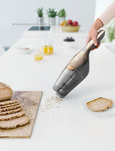 Provoz zajišťují akumulátory Sony Li-ion 18 V (1500mAh), které umožňují až 45 minutové vysávání na jedno nabití. Díky těmto samodobíjecím bateriím je tedy přenosný a vhodný pro rychlé a snadné použití. Po vybití je možné jej dobít v dobíjecím stojánku, který v sobě navíc ukrývá kartáček a štěrbinovou hubici. A pokud jste při úklidu vyrušeni, nevadí, spotřebič můžete kdykoliv a kdekoliv zaparkovat. Není ho totiž nutné opírat, design sám zajistí samostatné stání.