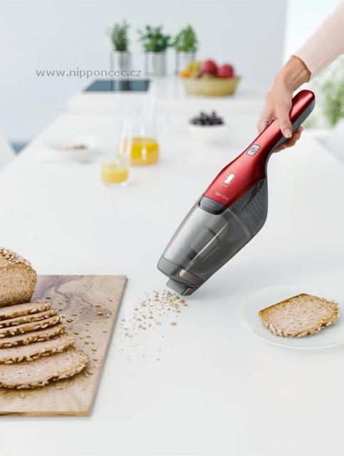 Provoz zajišťují akumulátory Sony Li-ion 18 V (1500mAh), které umožňují až 45 minutové vysávání na jedno nabití. Díky těmto samodobíjecím bateriím je tedy přenosný a vhodný pro rychlé a snadné použití. Po vybití je možné jej dobít v dobíjecím stojánku, který v sobě navíc ukrývá kartáček a štěrbinovou hubici. A pokud jste při úklidu vyrušeni, nevadí, spotřebič můžete kdykoliv a kdekoliv zaparkovat. Není ho totiž nutné opírat, design sám zajistí samostatné stání.
