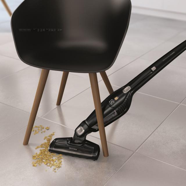 Bezsáčkový vysavač EERC72EB z nové řady Ergo Rapido od firmy Elektrolux nabízí výborné a praktické řešení v podobě tyčového a ručního vysavače zároveň. Rozsypali se vám vločky z ranní snídaně po kuchyňské lince? Nevadí, rychlým pohybem je z tyčového vysavače ruční. Stačí jen jednoduše vyjmout ruční jednotku z hlavního tělesa vysavače. Je osazen rotačním kartáčem a pro dokonalý a přehledný úklid je podlahová hubice vybavena LED diodami.