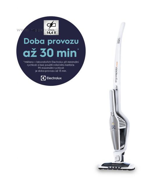 Vysoce výkonná lithiová baterie TurboPower vydrží dvakrát déle než niklové baterie a poskytuje tak vyšší výkon po delší dobu, navíc je lehčí a snadněji se s ní manipuluje. Výměna baterie je snadná, rychle se dobíjí, doba provozu je až 30 minut a kontrolka signalizuje nutnost dobití.Manévrování o 180° se systémem EasySteerTM, ergonomický design, důmyslná hubice a velká zadní kolečka zajišťují při vysávání na všech typech podlah potřebnou flexibilitu a bezproblémový pohyb i otáčení. Díky dvoustupňovému režimu výkonu můžete přizpůsobit vysávání různým povrchům. Až práci dokončíte, stačí vysavač umístit zpět do nabíjecí stanice.Využijte dokonalou flexibilitu a funkční design. Ať už potřebujete vysát velkou plochu nebo naopak malý, obtížně přístupný prostor, vysavač Ergorapido odvede svoji práci skvěle. Snadno odnímatelná ruční jednotka umožňuje bezproblémové vysávání kuchyňského stolu, nábytku nebo interiéru vozidla.Zapomeňte na nekonečné odstraňování vlasů a vláken z kartáče vašeho vysavače. Díky patentované kartáčové technologii BrushrollCleanTM to nový vysavač Ergorapido udělá za vás pouhým sešlápnutím pedálu!