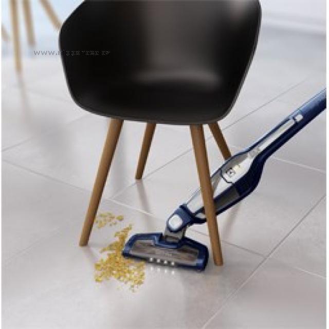 Vysoce výkonná lithiová baterie TurboPower vydrží dvakrát déle než niklové baterie a poskytuje tak vyšší výkon po delší dobu, navíc je lehčí a snadněji se s ní manipuluje. Výměna baterie je snadná, rychle se dobíjí, doba provozu je až 30 minut a kontrolka signalizuje nutnost dobití.Manévrování o 180° se systémem EasySteerTM, ergonomický design, důmyslná hubice a velká zadní kolečka zajišťují při vysávání na všech typech podlah potřebnou flexibilitu a bezproblémový pohyb i otáčení. Díky dvoustupňovému režimu výkonu můžete přizpůsobit vysávání různým povrchům. Až práci dokončíte, stačí vysavač umístit zpět do nabíjecí stanice.Využijte dokonalou flexibilitu a funkční design. Ať už potřebujete vysát velkou plochu nebo naopak malý, obtížně přístupný prostor, vysavač Ergorapido odvede svoji práci skvěle. Snadno odnímatelná ruční jednotka umožňuje bezproblémové vysávání kuchyňského stolu, nábytku nebo interiéru vozidla.Zapomeňte na nekonečné odstraňování vlasů a vláken z kartáče vašeho vysavače. Díky patentované kartáčové technologii BrushrollCleanTM to nový vysavač Ergorapido udělá za vás pouhým sešlápnutím pedálu!