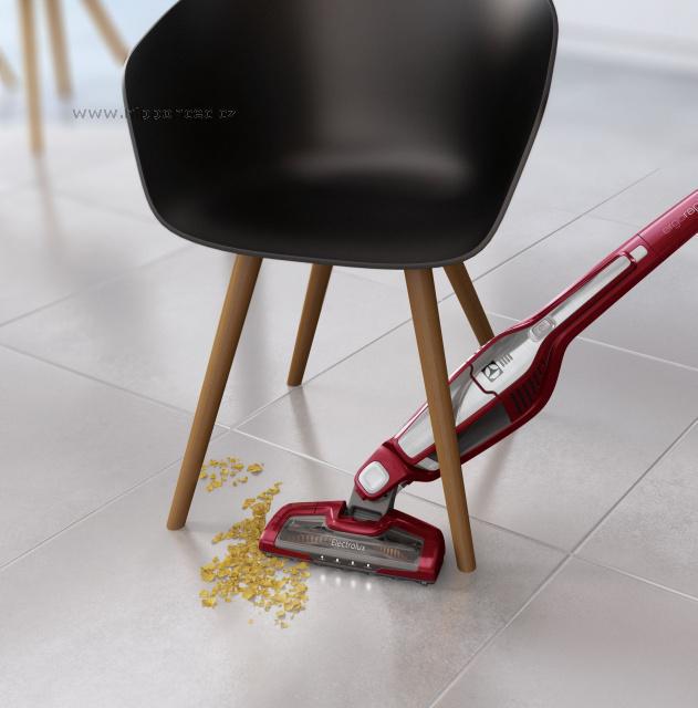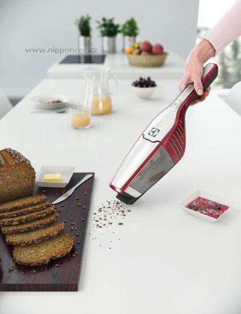 Bezsáčkový vysavač 2 v 1 (tyčový a ruční) s rotačním kartáčem, patentovaný systém Brush roll Clean (BRC), cyklónová jednotka, samostatně stojící poloha, LED diody integrované v podlahové hubici pro přehledný úklid, akumulátory Li-Ion - 18 V, nádoba na nečistoty objem 0,5 l, dobíjecí stojánek s příslušenstvím (kartáček a štěrbinová hubice), váha samostatného vysavače je 1,08 kg, celkem váží 2,46 kg, hlučnost - 79 dB(A), barva: melounově červená.
