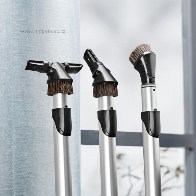Díky důmyslnému nástroji 3v1 (kartáček, štěrbinová hubice, hubice na čalounění) si poradí s každým povrchem a texturou. Vysavač disponuje digitálním displejem, schodovým stojanem, který zajišťuje, že vysavač bude stát na vašich schodech rovně. Pro snadné skladování je vysavač vzadu vybaven úchytem pro parkování hadice a dole úchytem pro zajištění trubek.