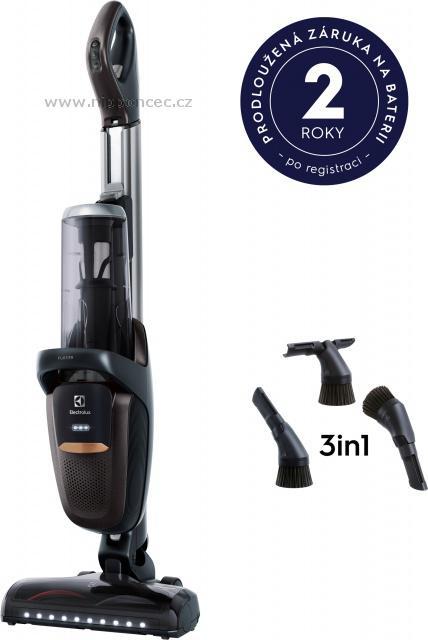 Na ergonomicky tvarované rukojeti jsou umístěna ovládací tlačítka chodu: ON/OFF a tlačítko nastavení úrovně výkonu. Zde můžete volit z 3 režimů výkonu: MAX, který uvede vysavač do provozu na 17 minut, Střed., který uvede vysavač do provozu na 30 minut, a LONG pro 60minut v provozu. Vysavač je společně dodáván s kartáčkem 3v1, který obsahuje hubici na čalounění, kartáček a štěrbinovou hubici. Součástí je také dobíjecí stanice. Pro snadné uskladnění je možné jej zaparkovat ve vertikální poloze.