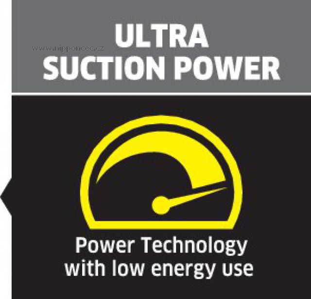 Extrémně sacího výkonu je dosaženo za pomoci energeticky efektivnějším motorům, nových podlahových hubic a hadic, optimálního těsnění stroje i jeho příslušenství a nové konstrukci vysavače s optimálním prouděním vzduchu. Navíc speciálně vyvinutá hubice umožnuje snadný skluz po vysávané podlaze a rychle se přizpůsobí suchým i mokrým nečistotám. Hubice je dodávána s klipy na mokré a čisté nečistoty, které velice snadno vyměníte.