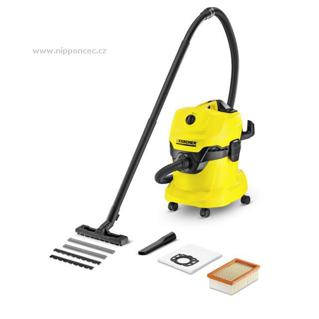 Kärcher WD 4 patří do rodiny vysavačů Wet & Dry značky Kärcher, známou pod zkratkou WD. Jak název napovídá, jedná se o vysavač, který zvládne jak mokré (Wet), tak suché (Dry) nečistoty, ale nebojí se ani jemných, hrubých nebo větších částic nečistot. Pyšní se extrémním sacím výkonem, nízkou spotřebou elektrické energie, speciálně vyvinutou podlahovou hubicí a širokým, komfortním příslušenstvím. Oproti svému kolegovy WD 6 jej nelze spojit s elektrickými zařízeními, nádoba na nečistoty je z plastu a není vhodný pro venkovní použití či při rekonstrukci.