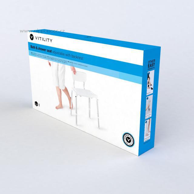 Koupelnové sedátko s opěrkou Vitility 70110820 pro bezpečné a pohodlné koupání nebo sprchování. Díky výškově nastavitelným nohám si můžete přizpůsobit výšku sedátka od 39 do 54 cm. Plastový sedák s protiskluzovým povrchem a otvorem pro odtok vody. Protiskluzové krytky nohou zabraňují nežádoucímu posouvání či klouzání. Sedátko má také dvě prohlubně na vnější straně, kterých se můžete držet.
