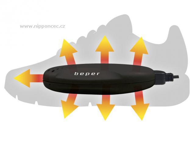 Praktický vysoušeč obuvi BEPER RI-424 vhodný pro všechny typy obuvi s možností napájení z elektrické sítě i přes adaptér pro zapojení v automobilu. Sušák o výkonu 12 W dosáhne teploty 45 °C.