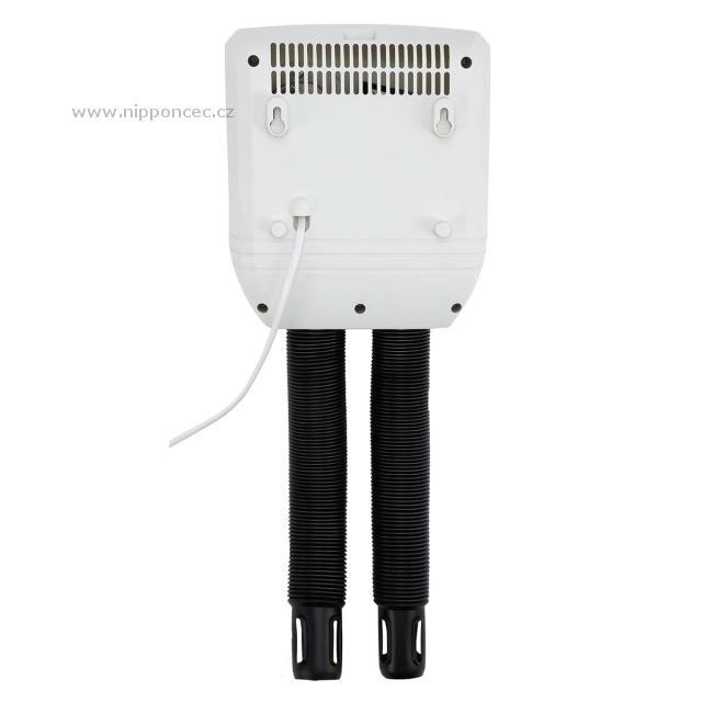 S vysoušečem obuvi Melissa snadno a rychle vysušíte mokré boty, jako např. holínky, zimní boty, lyžařské boty nebo běžecké boty. Jedná se o ideální řešení pro rodiny s dětmi a pro všechny, kteří se aktivně pohybují venku, bez ohledu na počasí. Přístroj rychle odstraňuje vlhkost a zajišťuje, že vaše boty jsou brzy připraveny k použití. Vysoušeč je navržen k zavěšení na zeď a jeho flexibilní hadice jsou vhodné jak pro nízkou, tak pro vysokou obuv. Přístroj je vybaven časovačem až na 120 minut a spolehlivou ochranou proti přehřátí, což zaručuje bezpečné a pohodlné používání