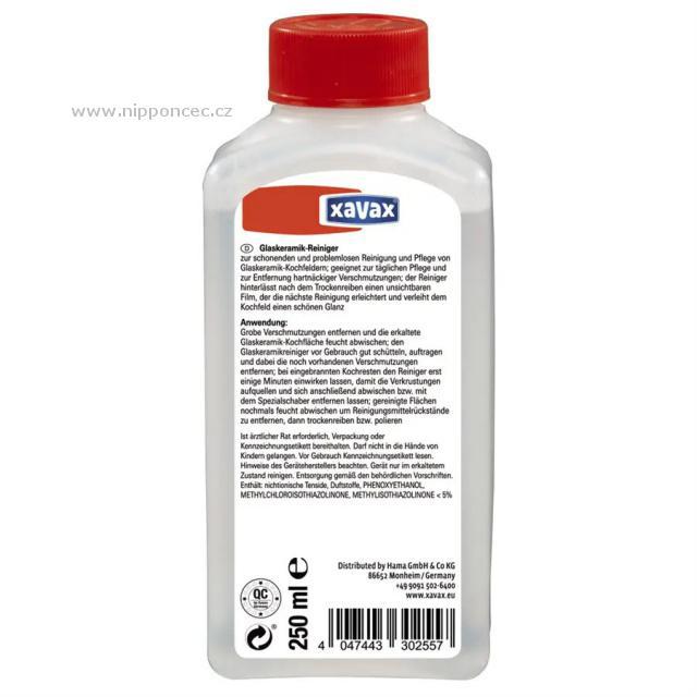 Xavax čisticí přípravek pro šetrné a snadné čištění sklokeramických varných desek, který zároveň zanechá na povrchu neviditelný film, jenž dodá varné desce lesk a současně usnadňuje příští čištění.