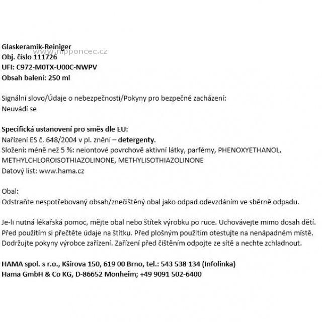 Varnou desku setřete vlhkou utěrkou. Čisticí prostředek pořádně protřepejte. Naneste na desku a očistěte zbytky nečistot. Na připálených zbytcích jídel nechejte chvíli působit, aby zaschlá vrstva změkla a teprve potom odstraňte. V případě potřeby použijte speciální škrabku na sklokeramické desky. Odstraňte zbytky čisticího prostředku vlhkou utěrkou. Následně utřete dosucha a případně vyleštěte (doporučujeme použít utěrky z mikrovlákna).