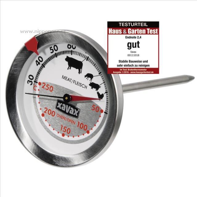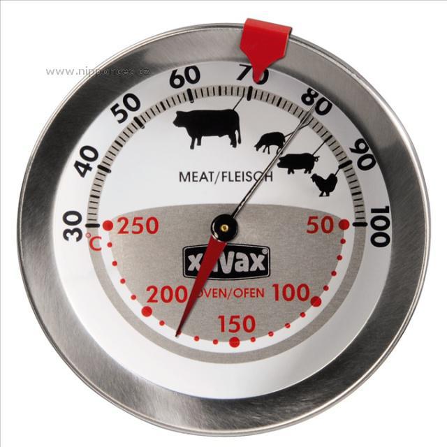 Mechanický teploměr pro potraviny vám změří nejen vnitřní teplotu pokrmů, ale zároveň změří aktuální teplotu v pečící troubě. Teploměr je totiž vybaven 2 stupnicemi, černá měří teplotu potravin a červená zároveň měří teplotu trouby. Nenarušuje stálost potravin a je ideální pro ryby drůbež a maso. Rozsah měření trouby je od 50 - 250°C, rozsah měření vnitřní teploty potraviny je od 30 - 100°C. Je vyroben z velmi kvalitní oceli a výhodou je, že vůbec není nutné potraviny krájet nebo řezat, stačí zapíchnout do upravované potraviny.