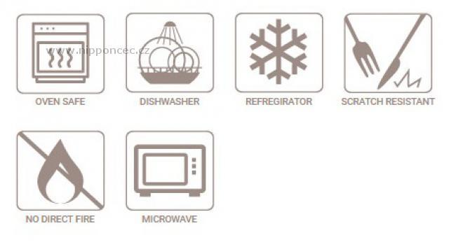 Elegantní vzhled, odolný glazovaný povrch, rovnoměrný ohřev.