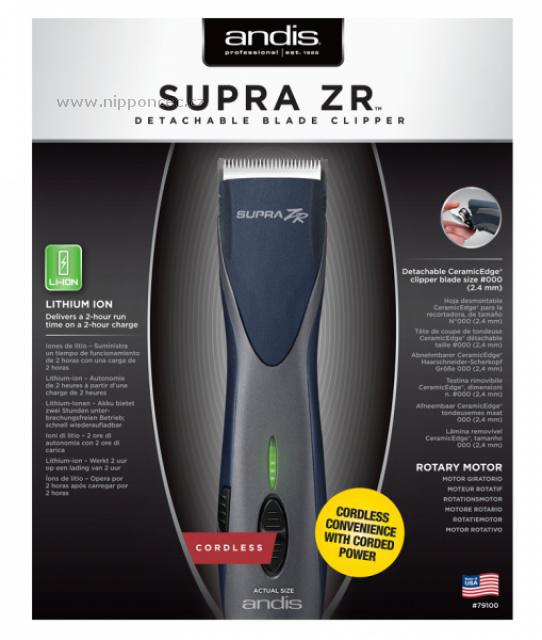 Supra ZR 79100 je nový střihací strojek od americké firmy Andis. Snese velké zatížení a proto je ideální pro střih hustých vlasů. Je osazený silným rotačním motorem o pěti rychlostech - s 1800 - 3800 otáčkami a lithiovým akumullátorem s výdrží až dvě hodiny nepřetržitého provozu.