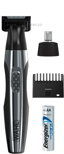 Cestovní sada WAHL Travel Kit. Obsahuje klasický zastřihovač i zastřihovač nosních chloupků, který je omyvatelný pod tekoucí vodou. Oba přístroje jsou poháněny AA baterií, která je součástí balení.