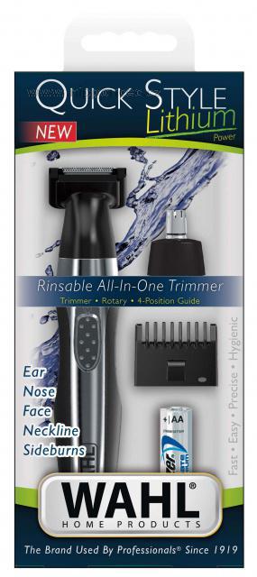 Kvalitní zastřihovač chloupků od známého amerického výrobce, určený pro evropský trh, Wahl 5604-035 QuickStyle Lithium, je nepostradatelným pomocníkem každého moderního muže, který pečuje o svůj vzhled, o své tělo a rovněž šetří svůj čas. Tento bateriový model zastřihovače je určený pro rychlou úpravu kníru, vousů, kotlet, krku a také pro bezbolestné odstranění nežádoucích nosních a ušních chloupků v domácích podmínkách. Součástí balení jsou dva nástavce: nasazovací posuvný hřebínek s nastavitelnou výškou střihu 2, 3, 4 nebo 5 mm a speciální rotační nástavec pro snadné odstranění chloupků v nose a uších. Dodává se s jednou tužkovou AA Lithium baterii, která zaručí dlouhotrvající výkon. Zastřihovač funguje jak na suché, tak i na mokré pokožce. Je vodotěsný a má čepele, vyrobené z nerezové oceli, takže po použití ho můžete bez problémů umýt pod tekoucí vodou. Díky ergonomickému tvaru a dobře tvarované rukojeti bude práce se zastřihovačem velmi pohodlná. Nízká hmotnost a kompaktní rozměry dovolují ukládat strojek třeba do šuplíku v koupelně a brát ho s sebou na cesty.