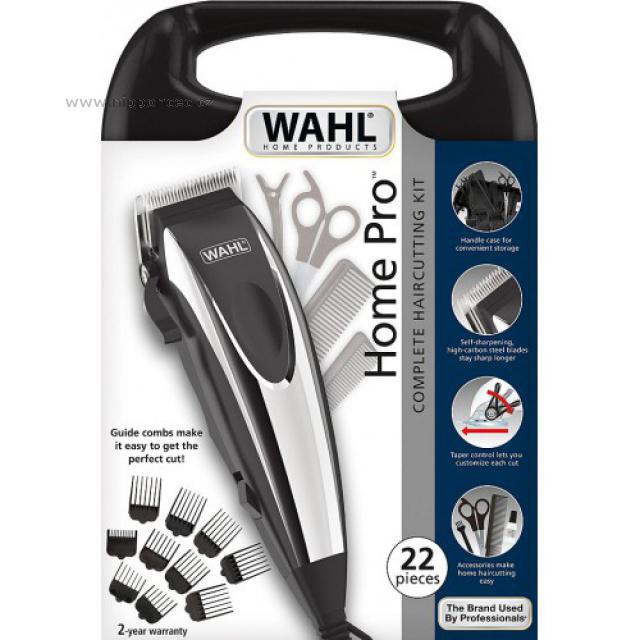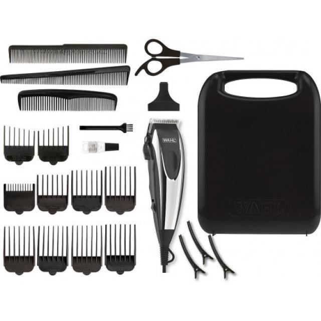 Zastřihovač WAHL Home Pro COMPLETE HAIRCUTTING KIT je vynikajícím pomocníkem při vytváření mnoha typů střihů. Díky kuželové páčce na boku přístroje je možné ihned změnit výšku střihu v rozpětí 1 - 3 mm. Vzhledem k přímému napájení ze sítě a silnému vibračnímu motoru je přístroj připravený k neustálému používání. Balení obsahuje 22 dílů příslušenství k tomuto zastřihovači jako jsou zastřihovací nástavce, nůžky, hřebeny, apod.