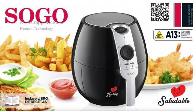 Air fryer Sogo nebo taky jinak vzduchová fritéza umožňuje snadný a zdravý způsob přípravy vašich oblíbených jídel za použití cirkulace prudkého horkého vzduchu. Ohřívá jídlo ze všech směrů a většina ingrediencí nepotřebuje žádný olej. Ve fritéze lze také připravovat plněné pečivo, péci koláč, nebo opětovně ohřívat jídlo. Varianta klasické fritézy pro fritování se sníženým obsahem tuku.